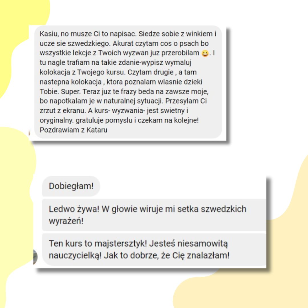 To kursowyzwanie ma Ci pokazać 100 ciekawych i użytecznych stałych wyrażeń w języku szwedzkim. Wszystko po to, żebyś wzbogacił swoje słownictwo i żeby mówienie i pisanie w tym języku przychodziło Ci z większą łatwością. Motywująca forma wyzwania ma Cię zmobilizować do krótkiej, ale codziennej pracy ze słownictwem. Kto wie, może uda się wyrobić nowy pozytywny nawyk?
